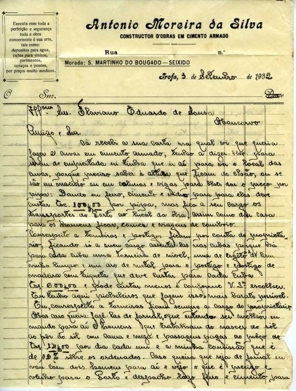 Carta para Flaviano Eduardo de Sousa, Negociante, Moncorvo, 1932