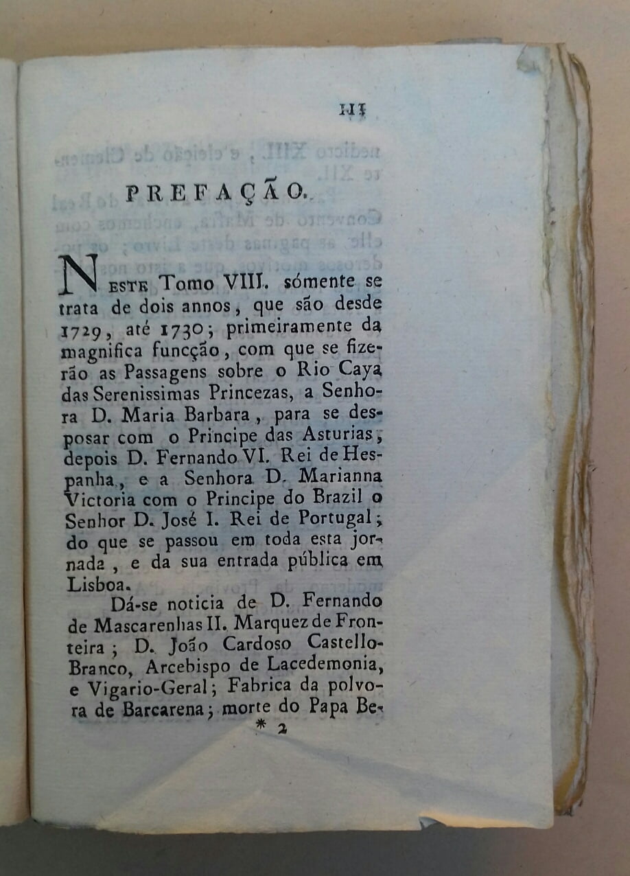 Neste Tomo, somente trata de dois anos, de 1729 a 1730. Obra com a dimensão de 16 x 11 cm em bom estado de conservação, com 432 páginas. Possui capas de guarda da página de rosto em cartão acastanhado.