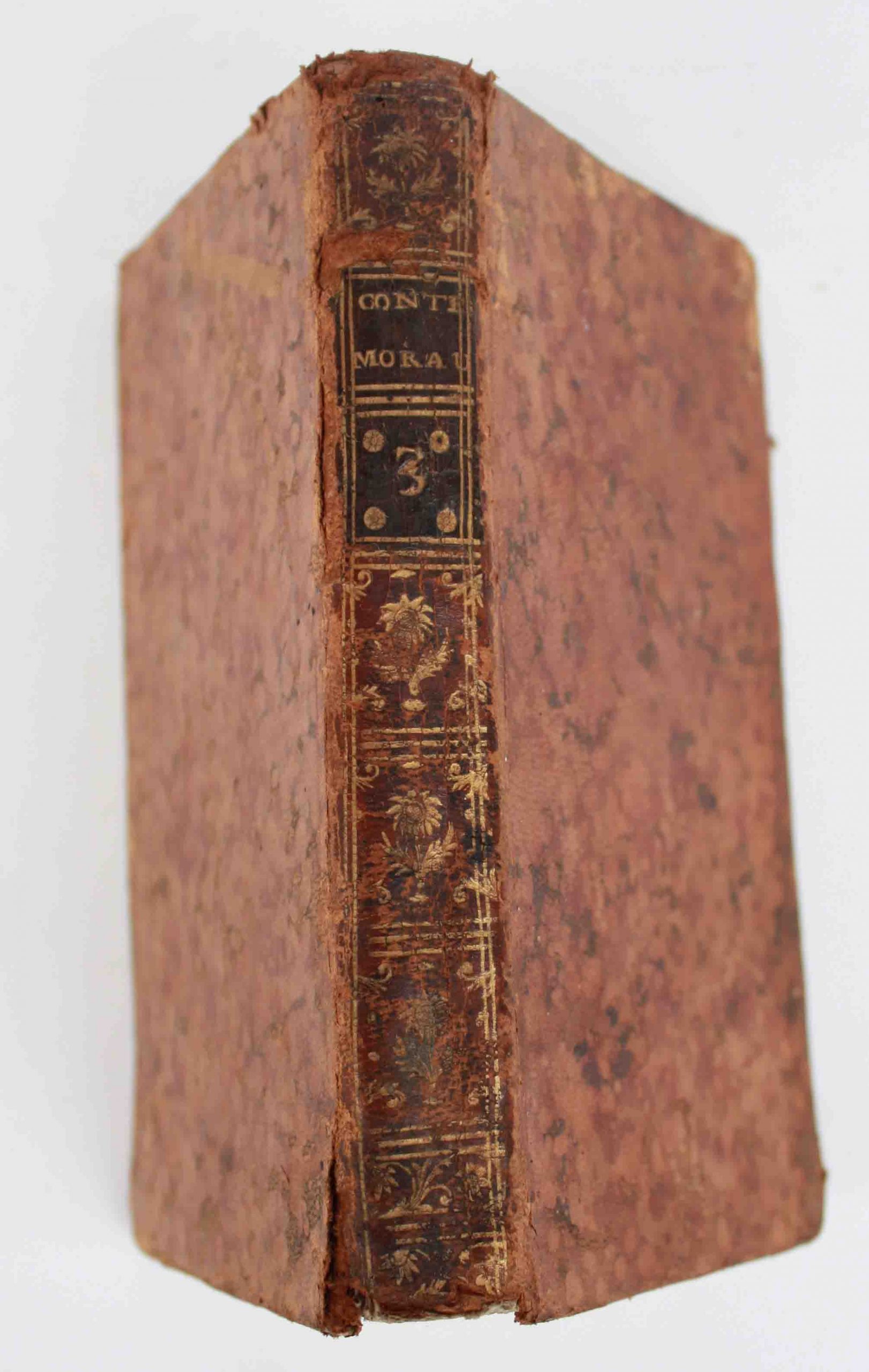 Encadernação inteira de carneira marmoreada com pequenas falhas nos cantos e nas capas. Lombada com ferros a ouro e gretada. Miolo com picos de acidez sem perturbar a mancha caligráfica. Obra de boa qualidade, com 221 págs. e tem a dimensão aproximada de 17×11 cm.