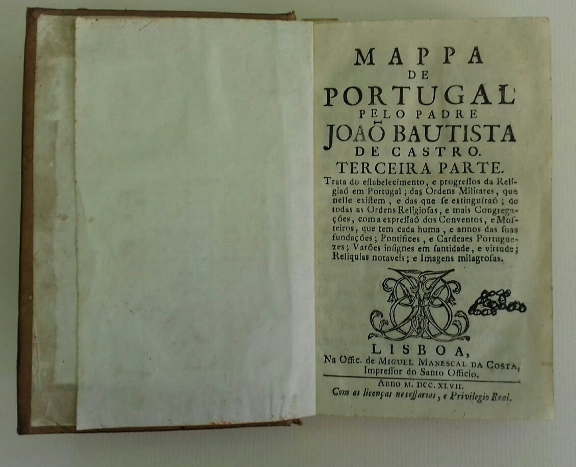 Excelente obra do padre João Bautista de Castro. Aborda nesta obra o estabelecimento e progressos da religião em Portugal; Ordens Militares;…. Capas em couro e a lombada ostenta belos ferros a ouro com reservas florais. Tem 446 páginas em bom estado de conservação. Medidas de 15 x 10,5 x 3 cm.