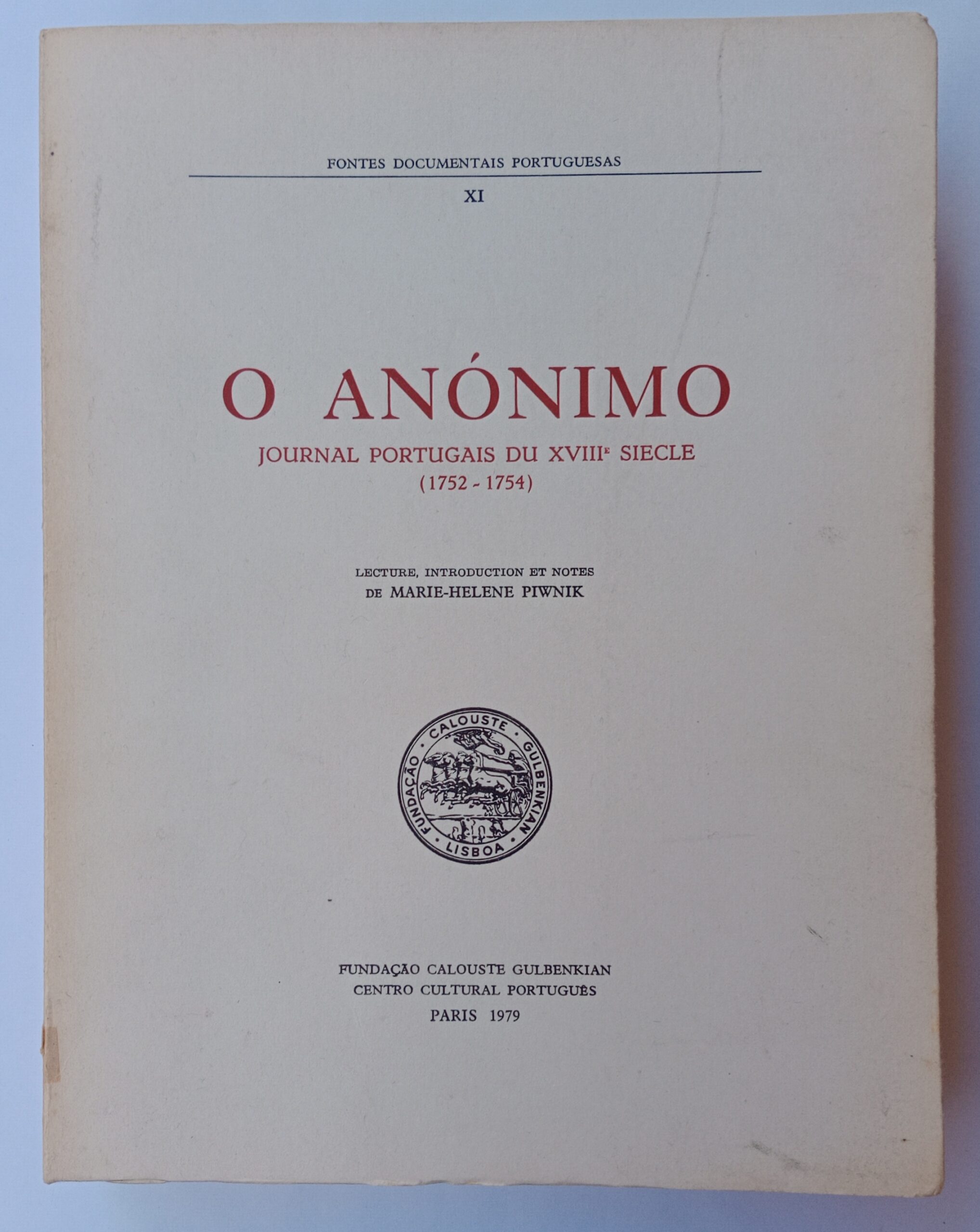 O Anónimo, Journal Portugais du XVIII Siecle (1752-1754), Fontes documentais Portuguesas XI,1979