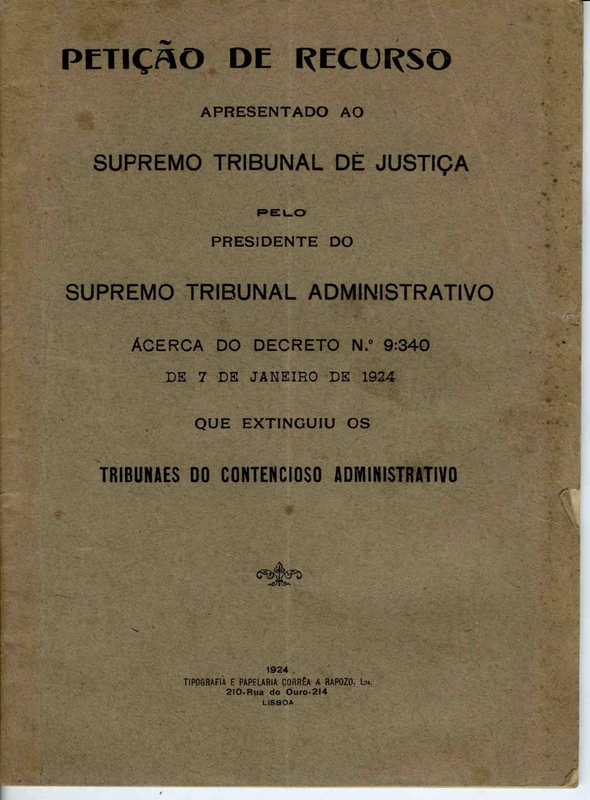 PETIÇÃO DE RECURSO apresentado ao Supremo Tribunal de Justiça…, 30 páginas, 1924