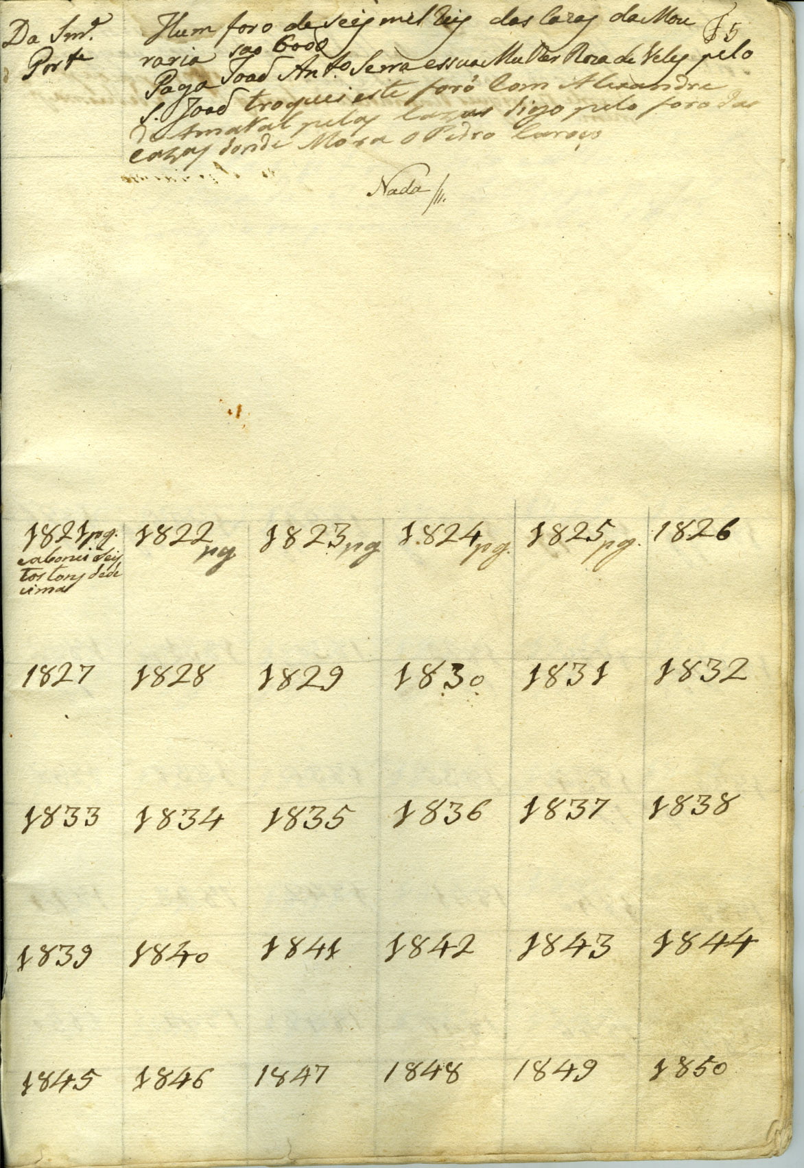 Importante caderno de registo de pagamento de foros das propriedade rústicas e rurais, pertencentes á família Avilez Juzarte, 48 páginas, desde 1821 até 1850.