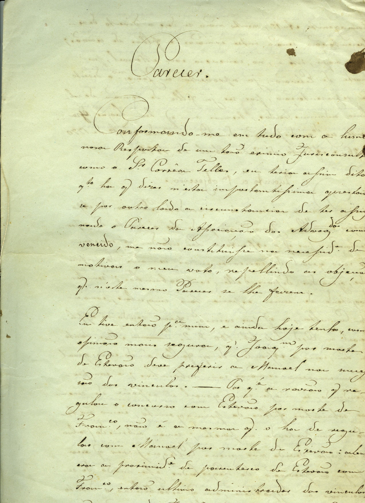 Excelente parecer jurídico, 1843. 4 páginas.