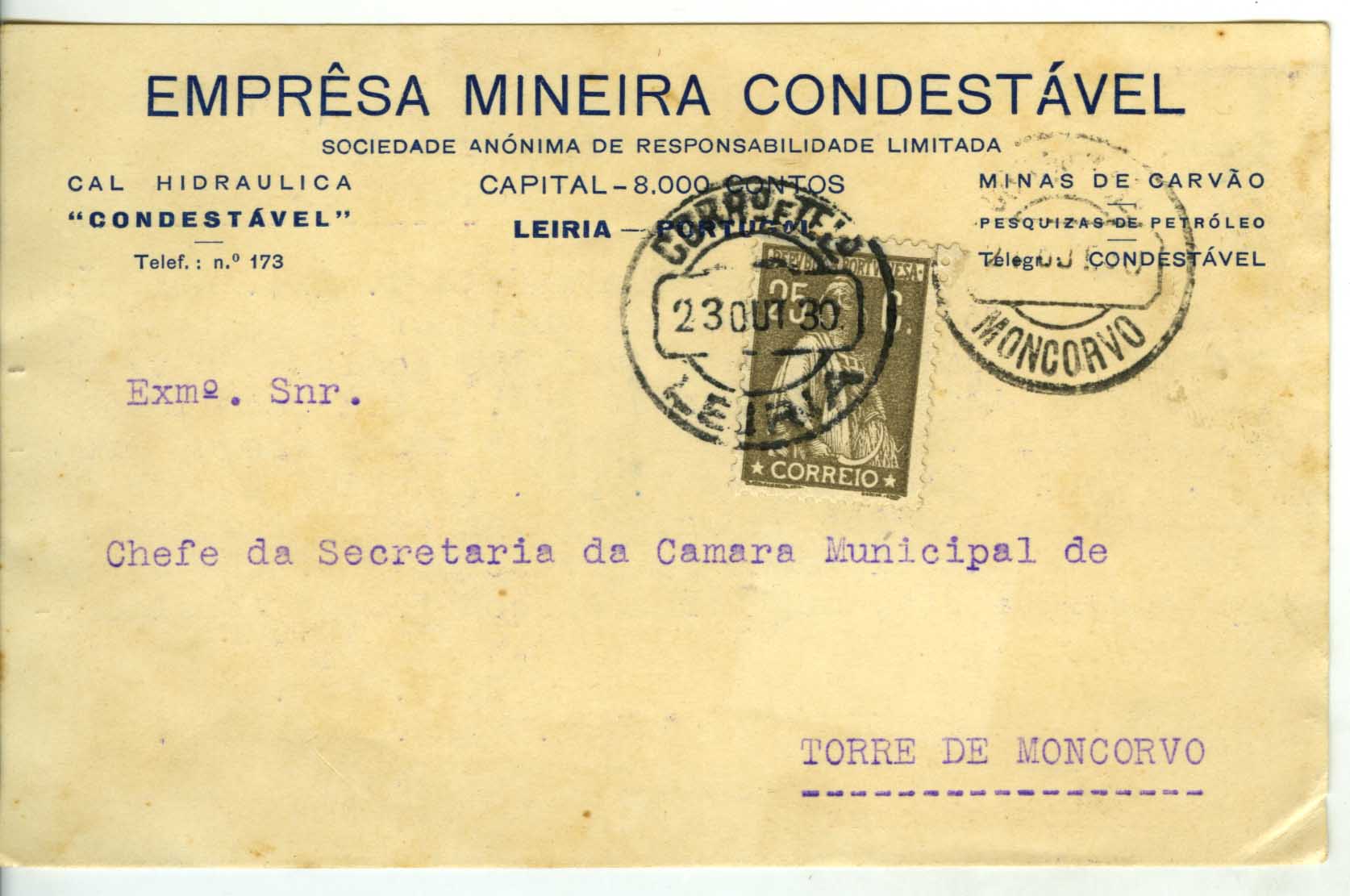Chefe da Secretaria da Câmara Municipal de Torre de Moncorvo, 23-10-1930