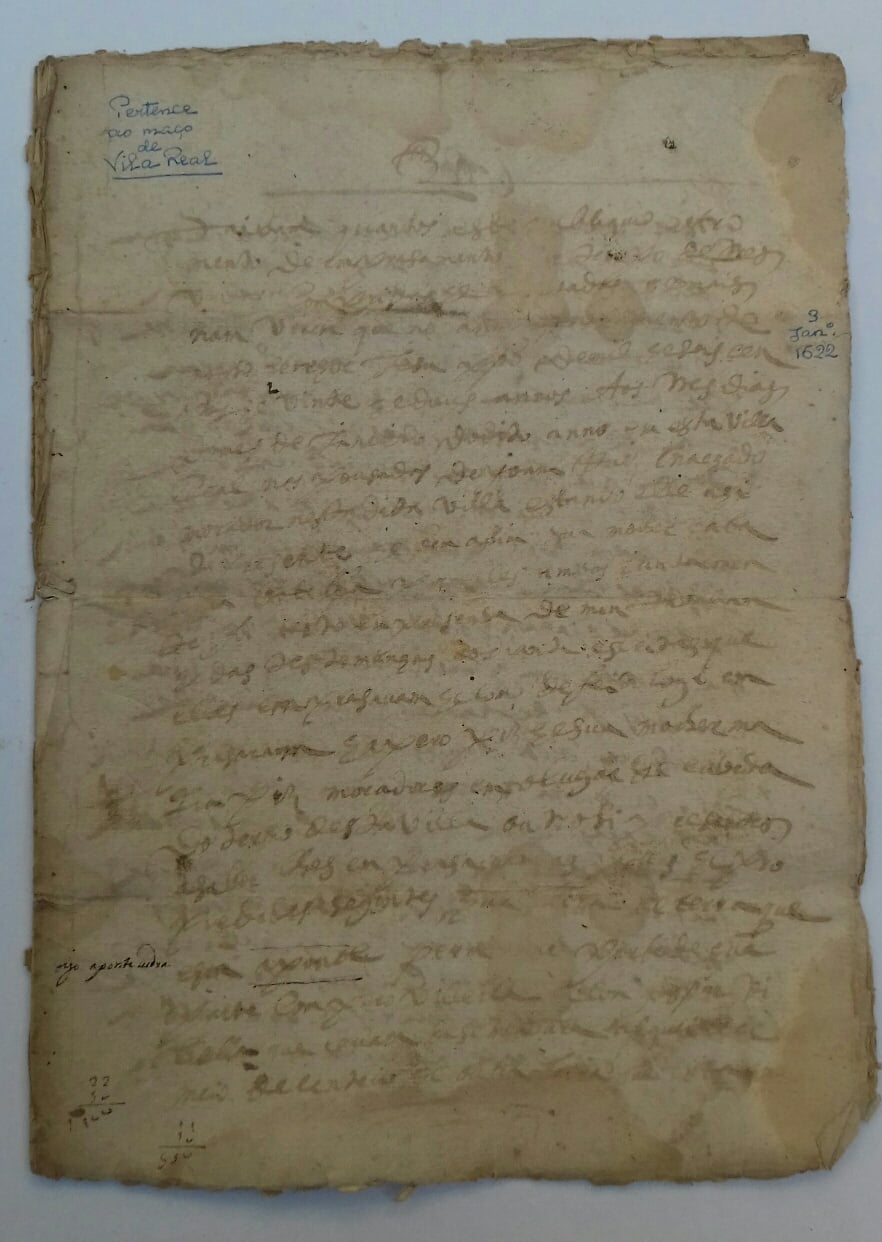 Manuscrito com cinco fólios em razoável estado de conservação.