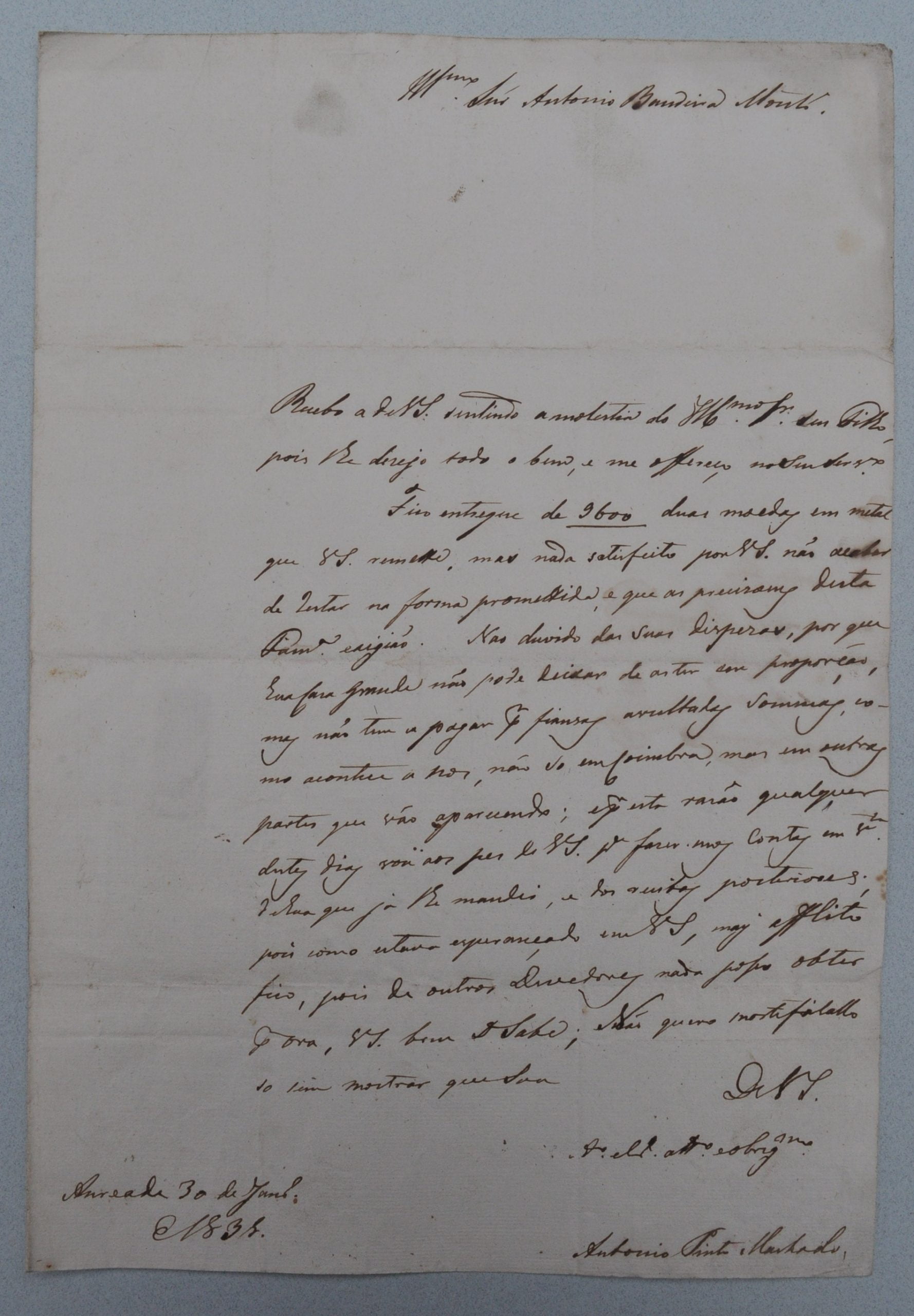 CARTA para António Bandeira Monteiro, Aregos, 1835, RESENDE