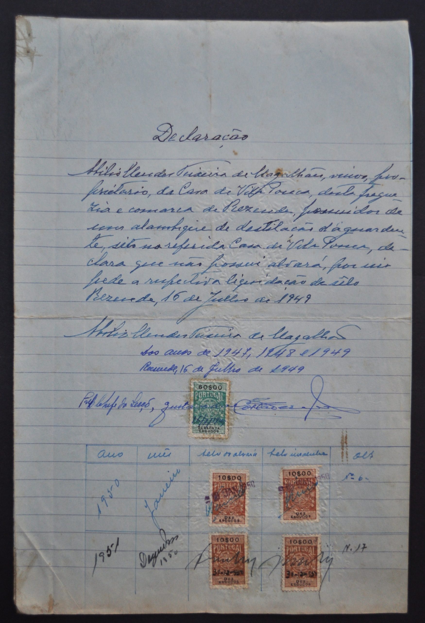 DECLARAÇÃO, casa de Vila Pouca, 1949, RESENDE