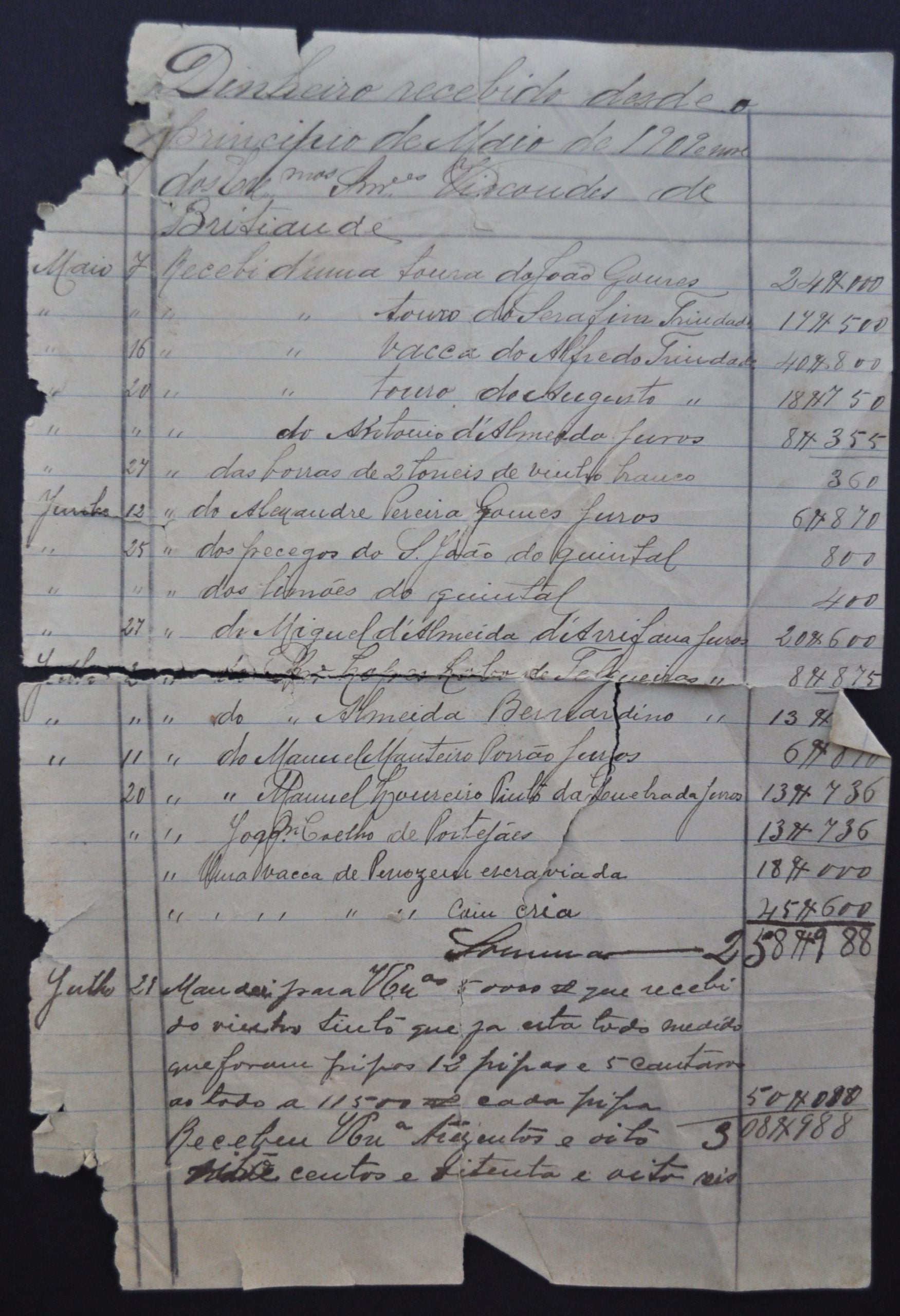 Dinheiro recebido, casa de Vila Pouca, 1909, RESENDE