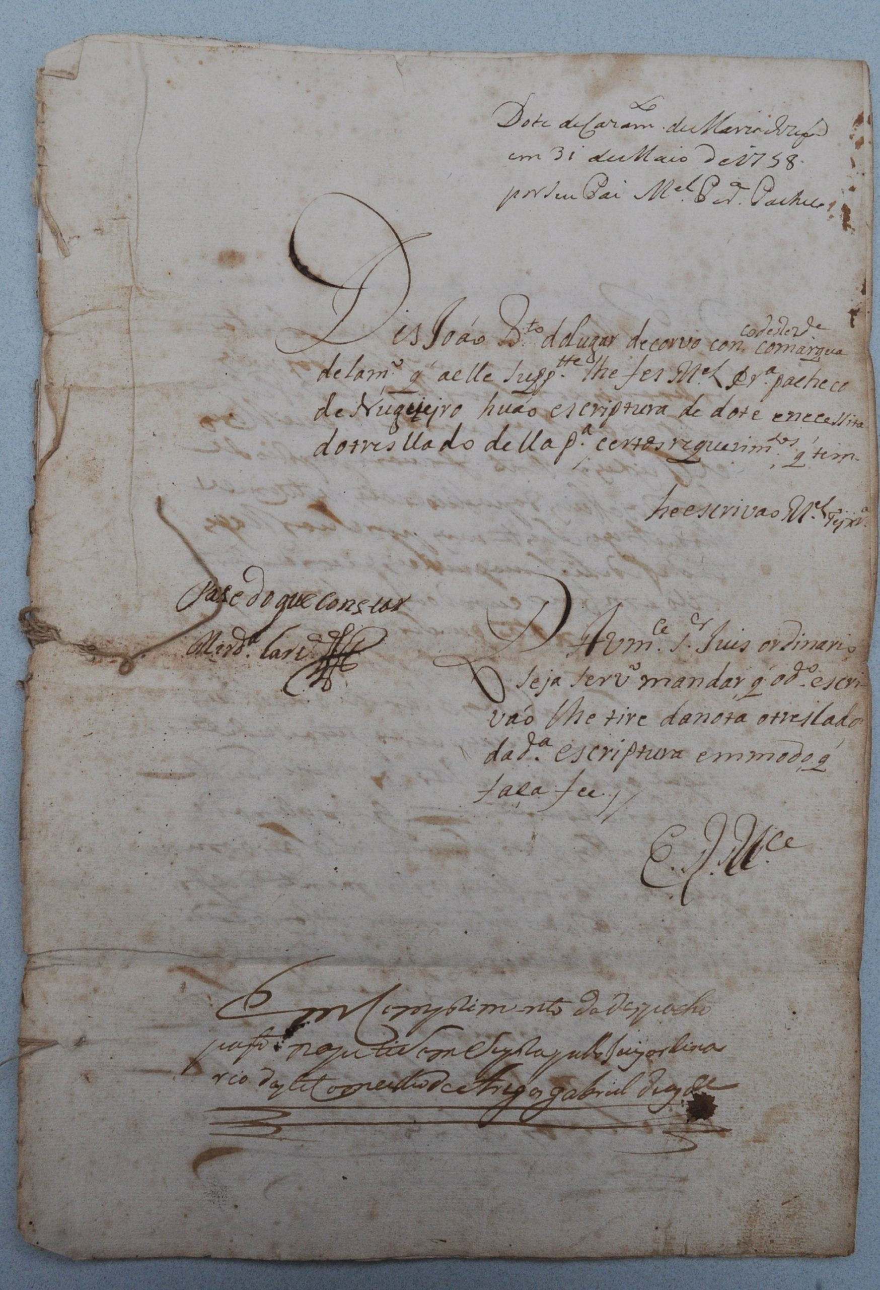 DOTE de Casamento, casa de Villa POUCA, 1758, RESENDE