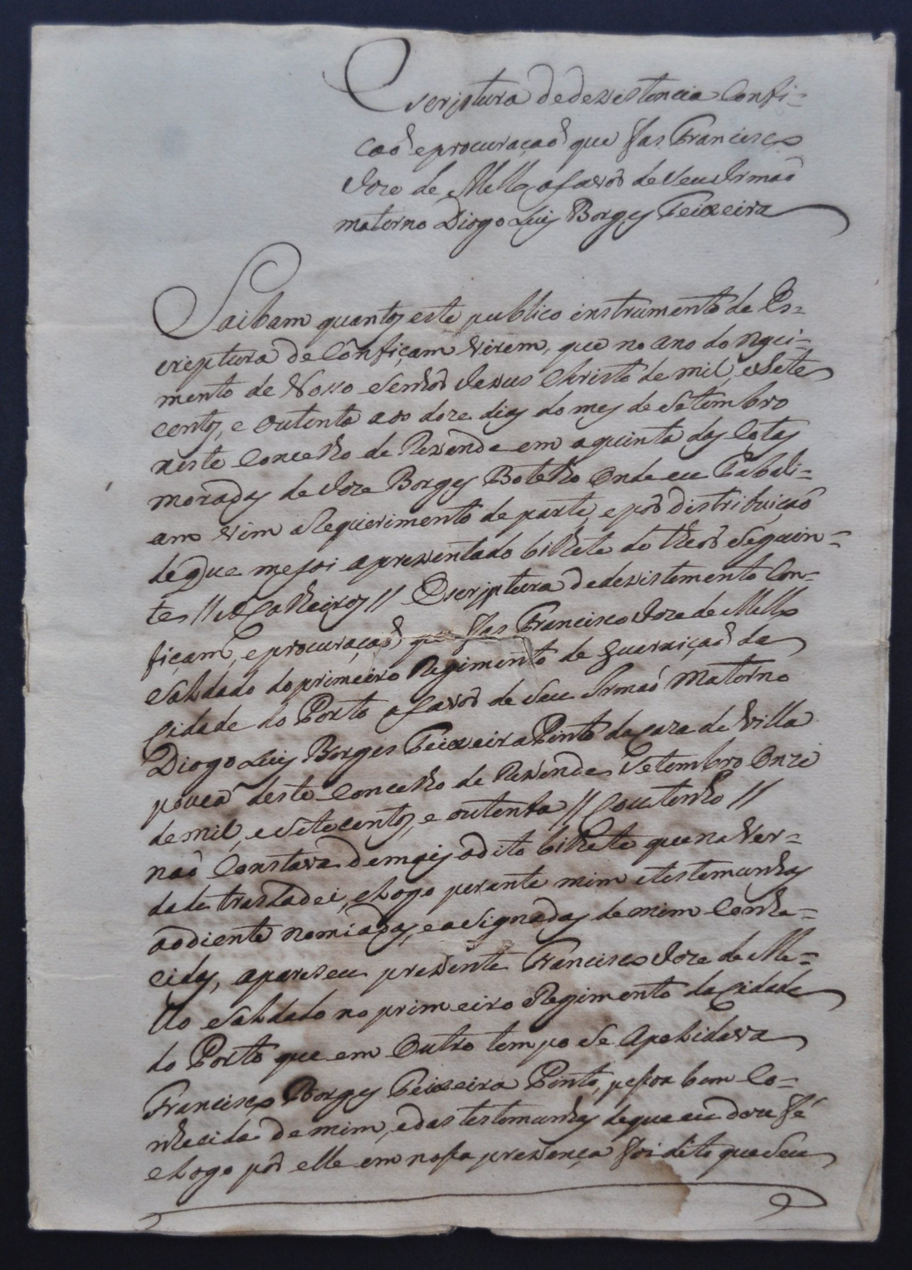 ESCRITURA de DESISTÊNCIA, casa de Vila Pouca, 1780, RESENDE