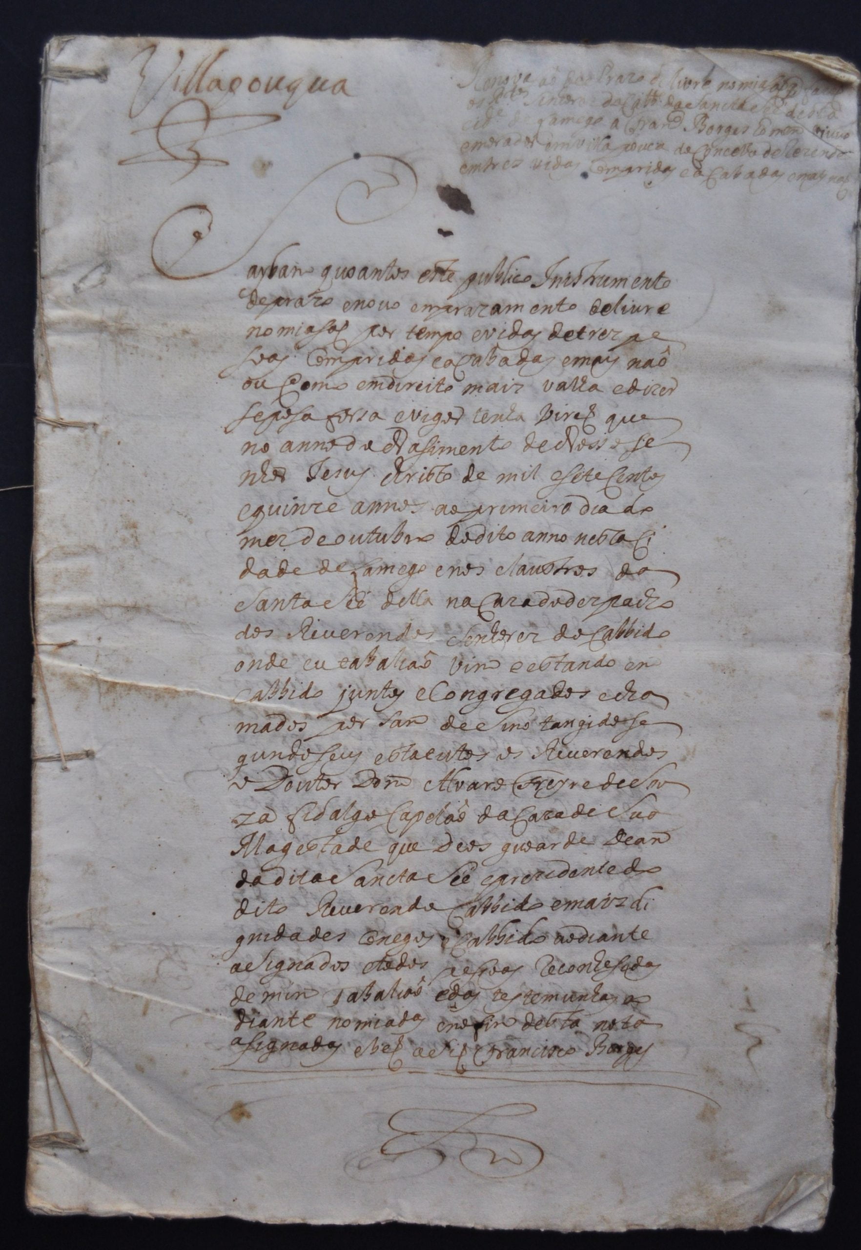 Extraordinário documento com cinquenta e quatro páginas, sendo que as últimas dez se encontram com manchas de humidade com prejuízo da mancha caligráfica na parte superior , lado direito. Contudo, a parte da renovação do Prazo encontra-se num bom estado de preservação.