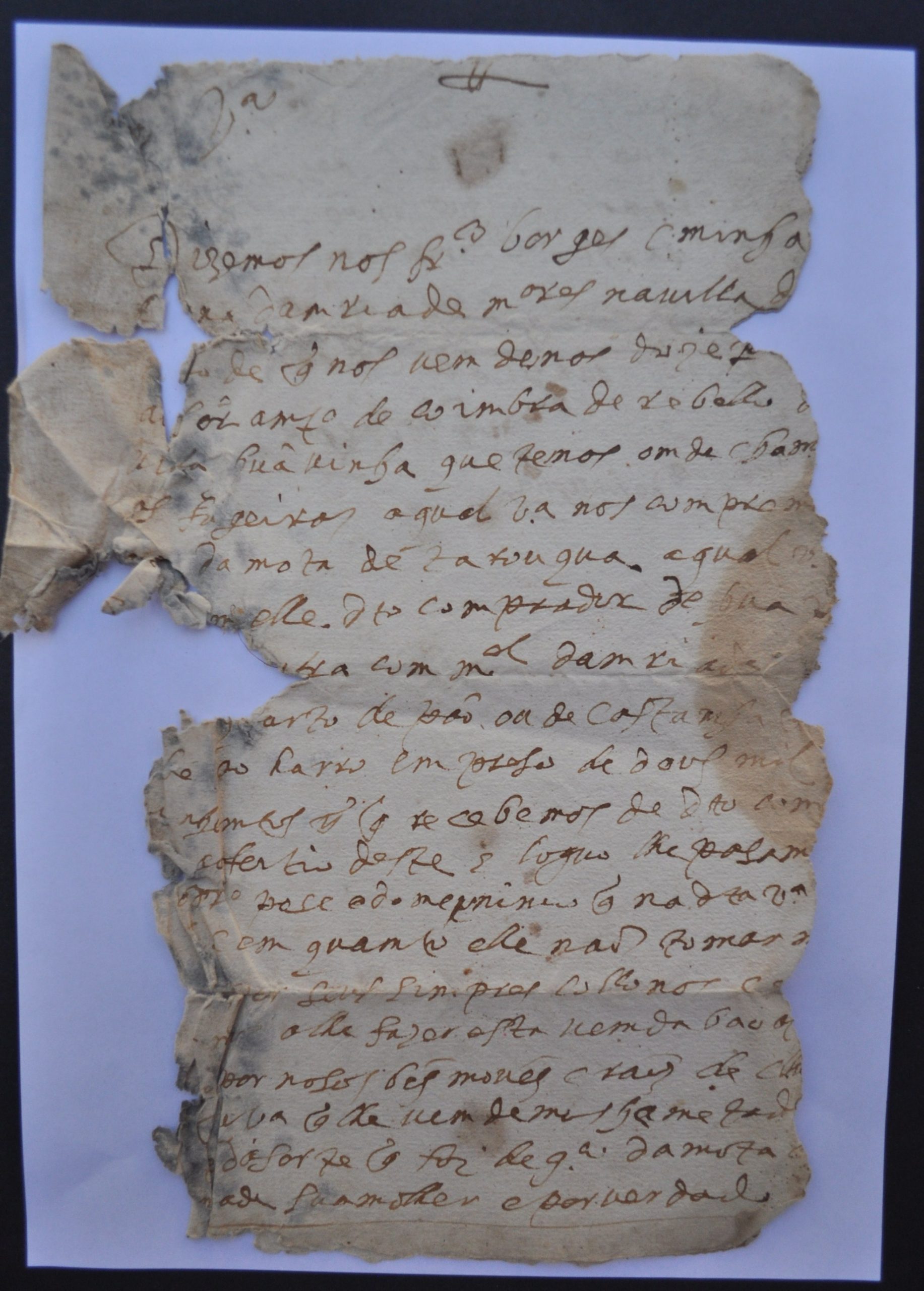 Documento com duas folhas, duas páginas caligrafadas. Tem falhas, mas com possibilidades de leitura quase completa.