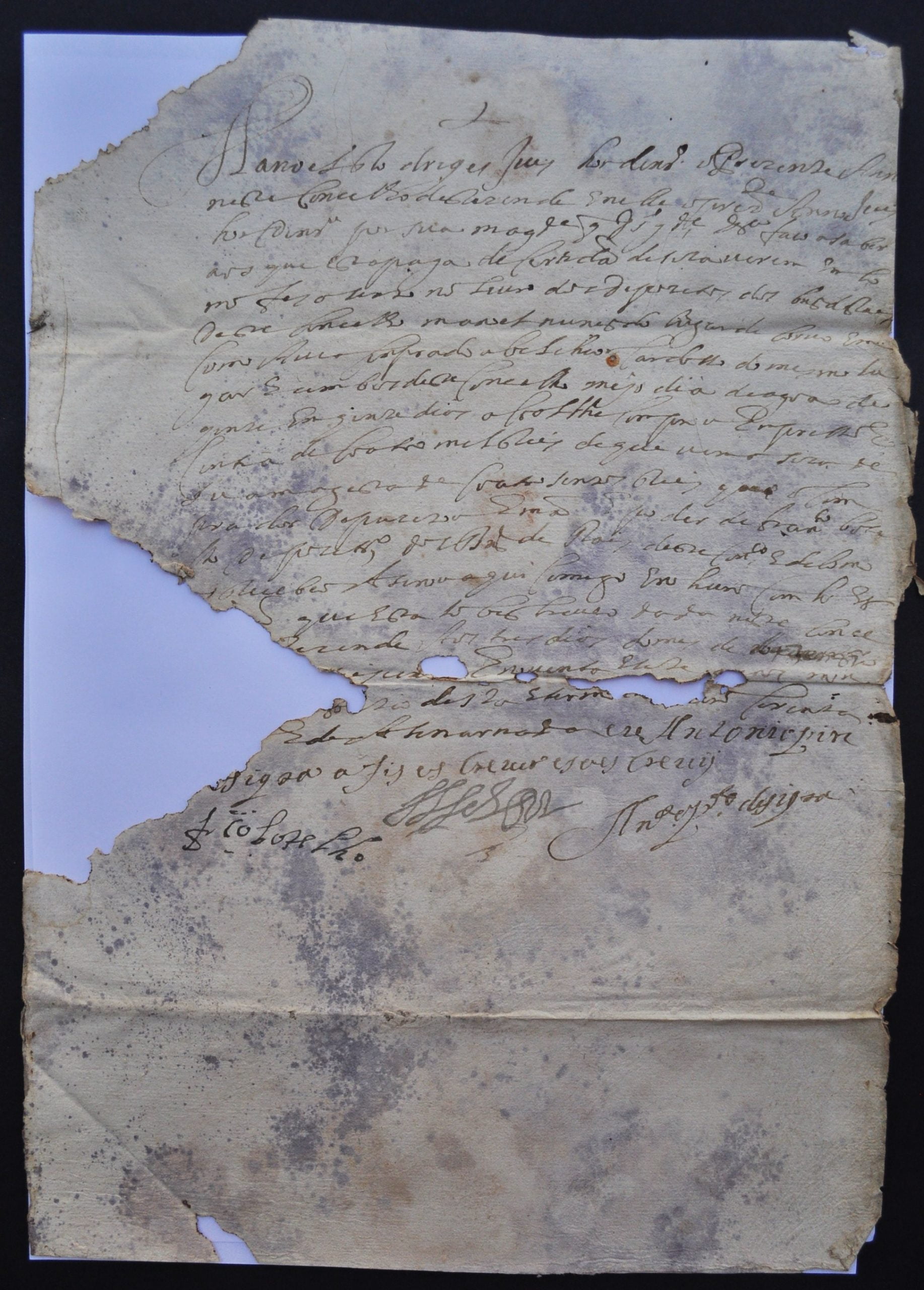 Documento com duas folhas, sendo que duas páginas estão caligrafadas.