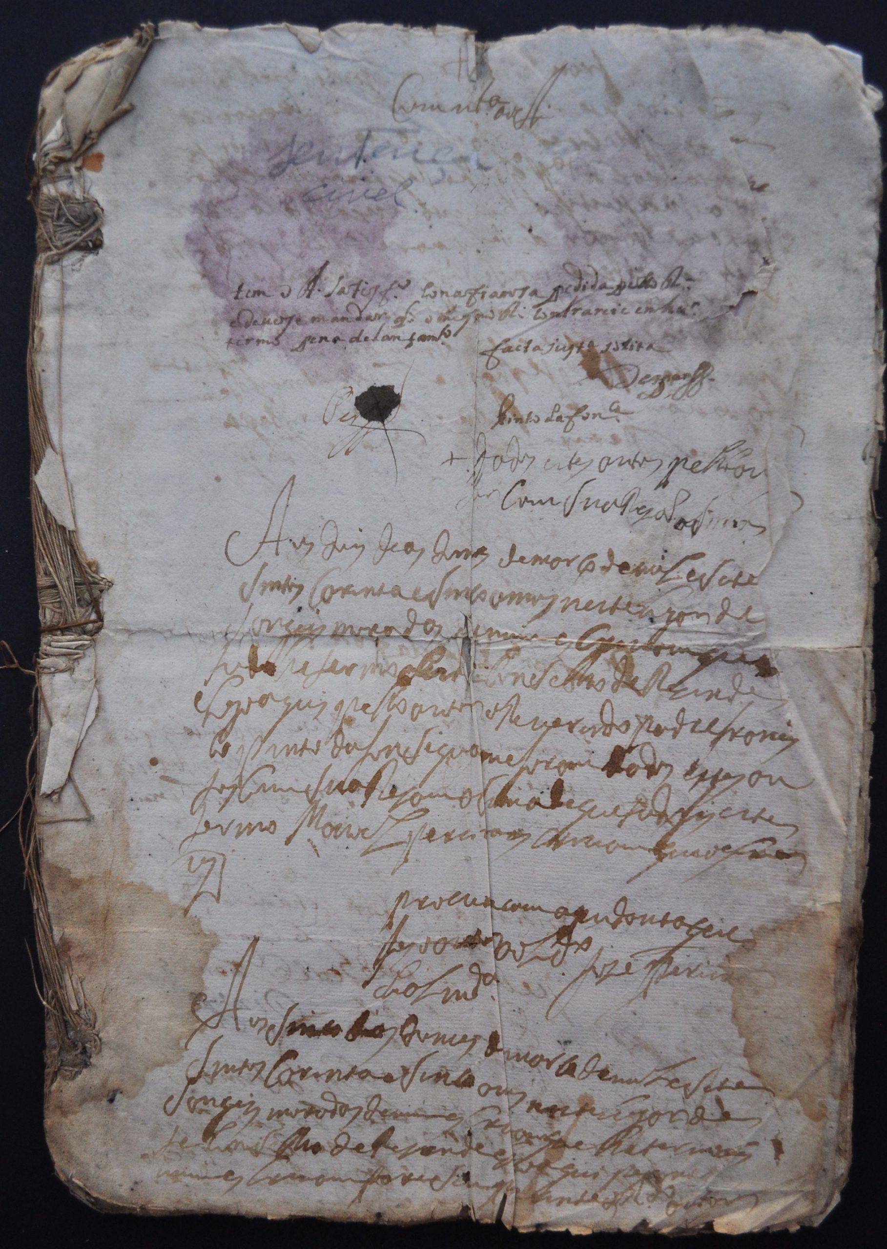 Documento com cento e duas páginas, com falha das primeiras três folhas, com manchas e falhas nas últimas quinze, com perturbação da mancha caligráfica.