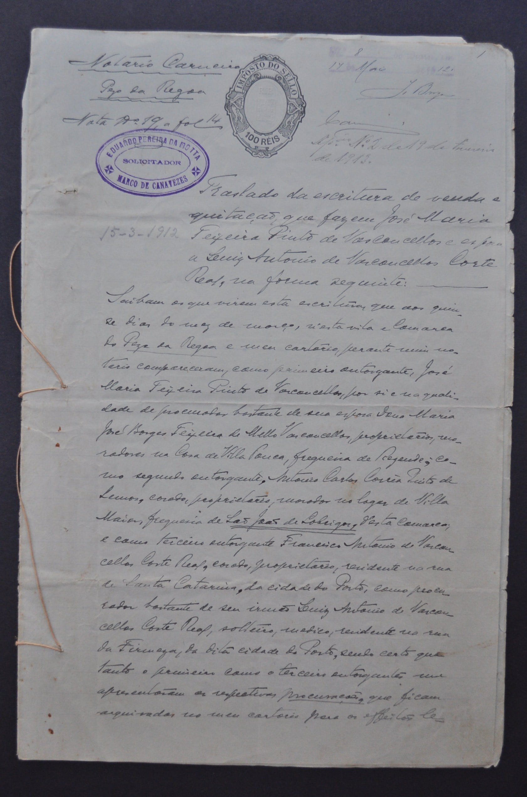 TRASLADO de Escritura, 1912, MARCO de CANAVESES