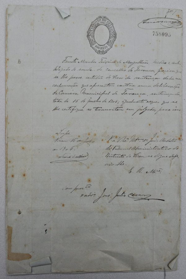 CERTIDÃO de TEOR de SENTENÇA, 1906, TAROUCA