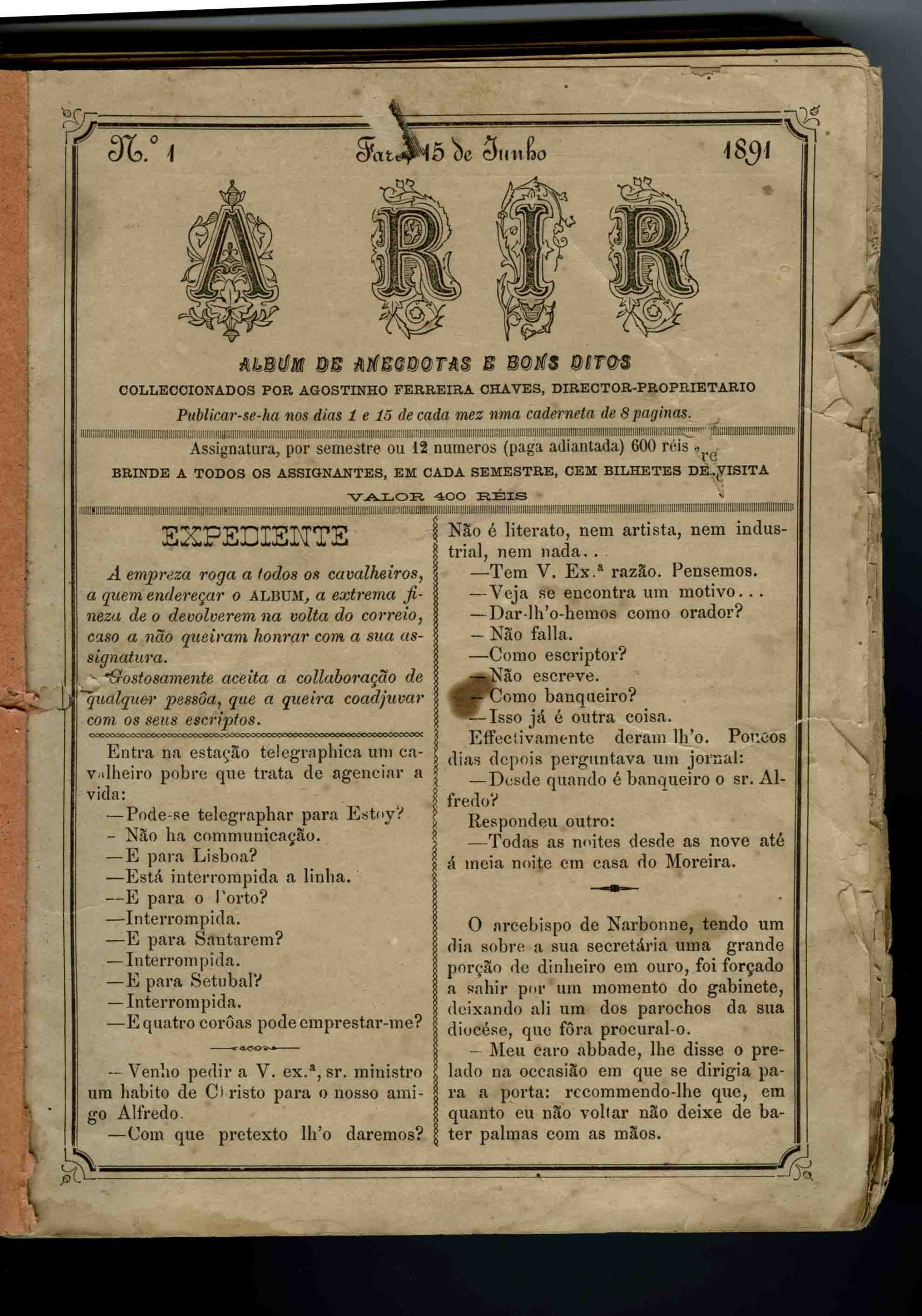 Revista A rir, do nº 1, Faro 15 de Junho de 1891, ao nº 63, Faro 15 de Janeiro de 1894 (ausência do nº 2 ao número 7)