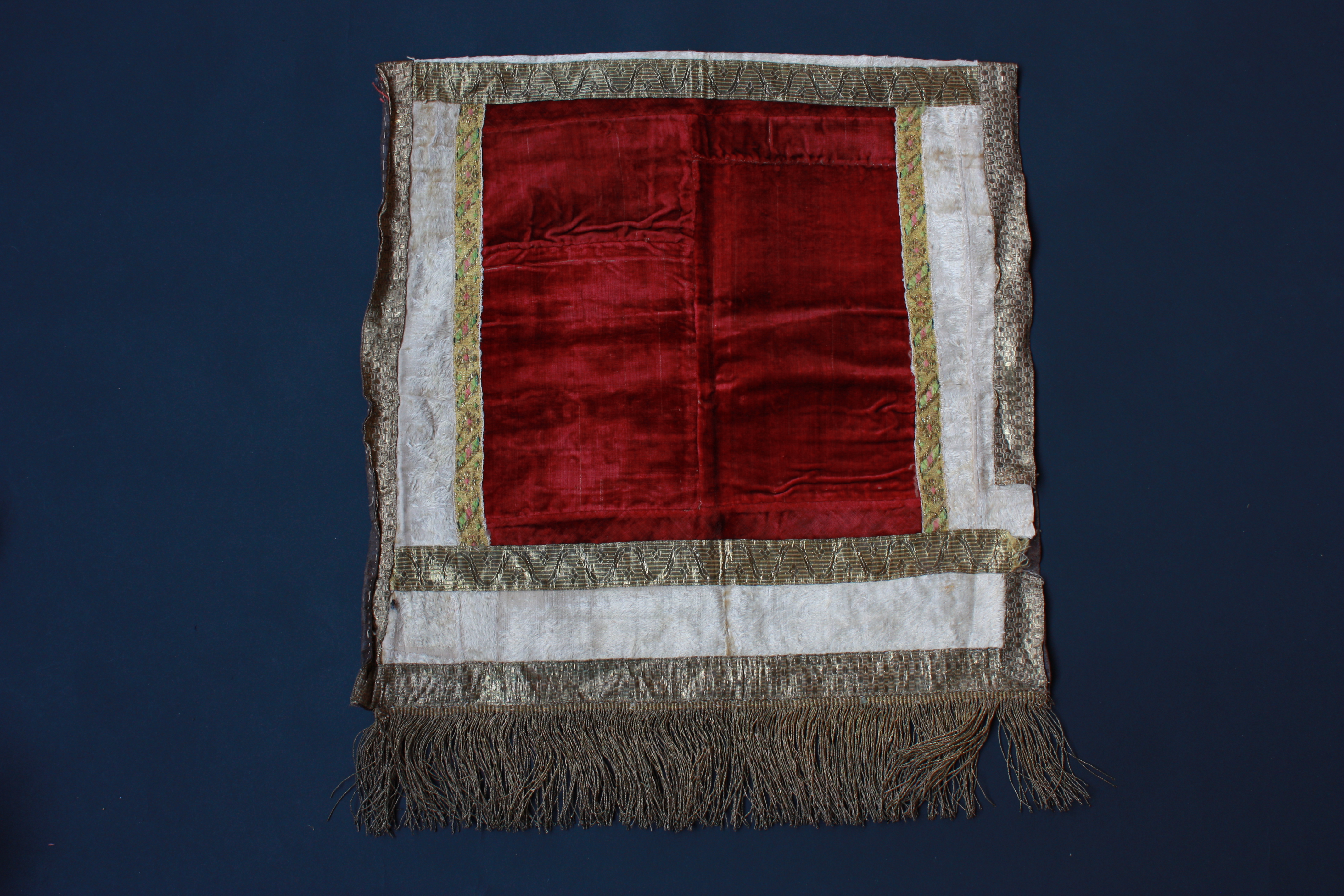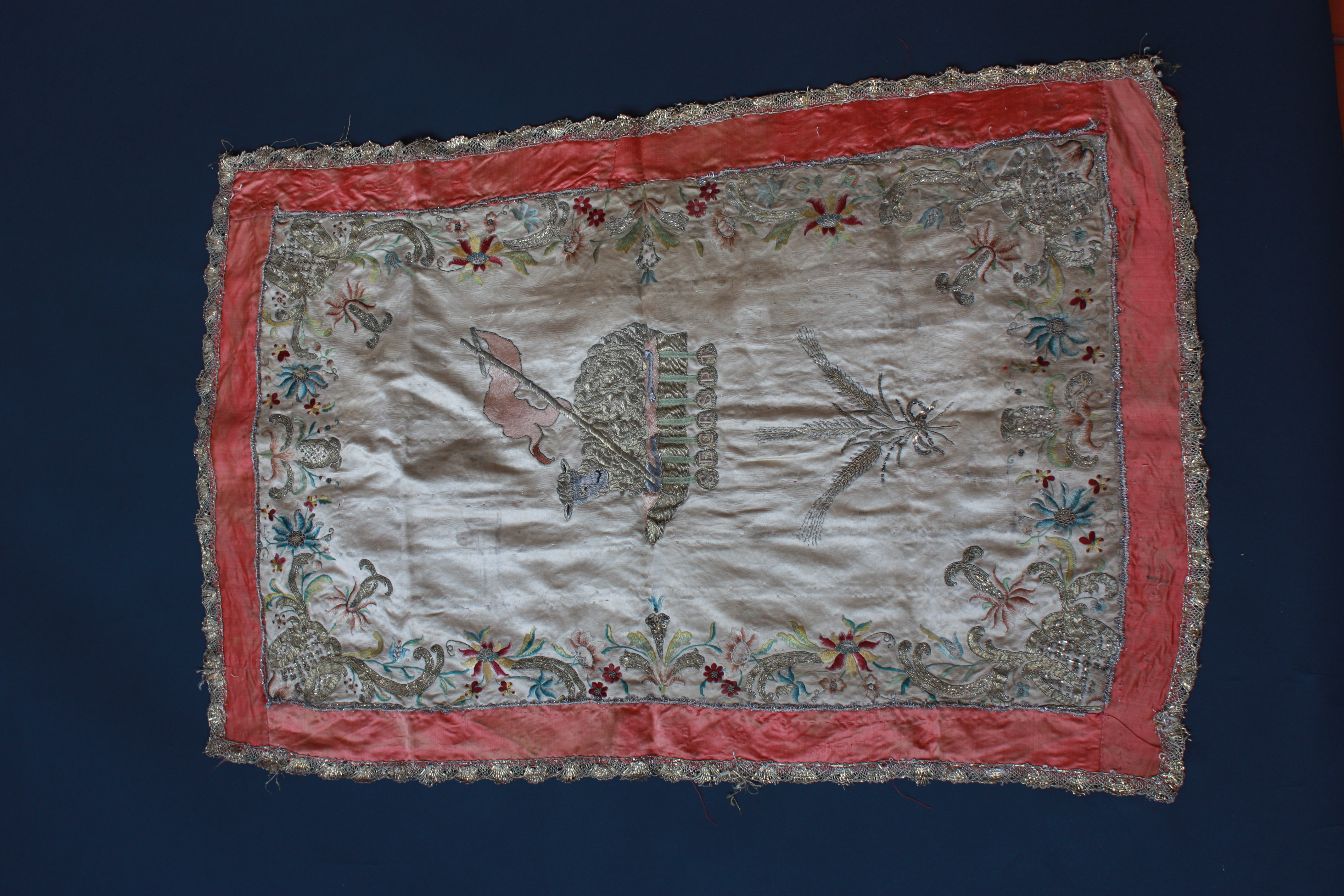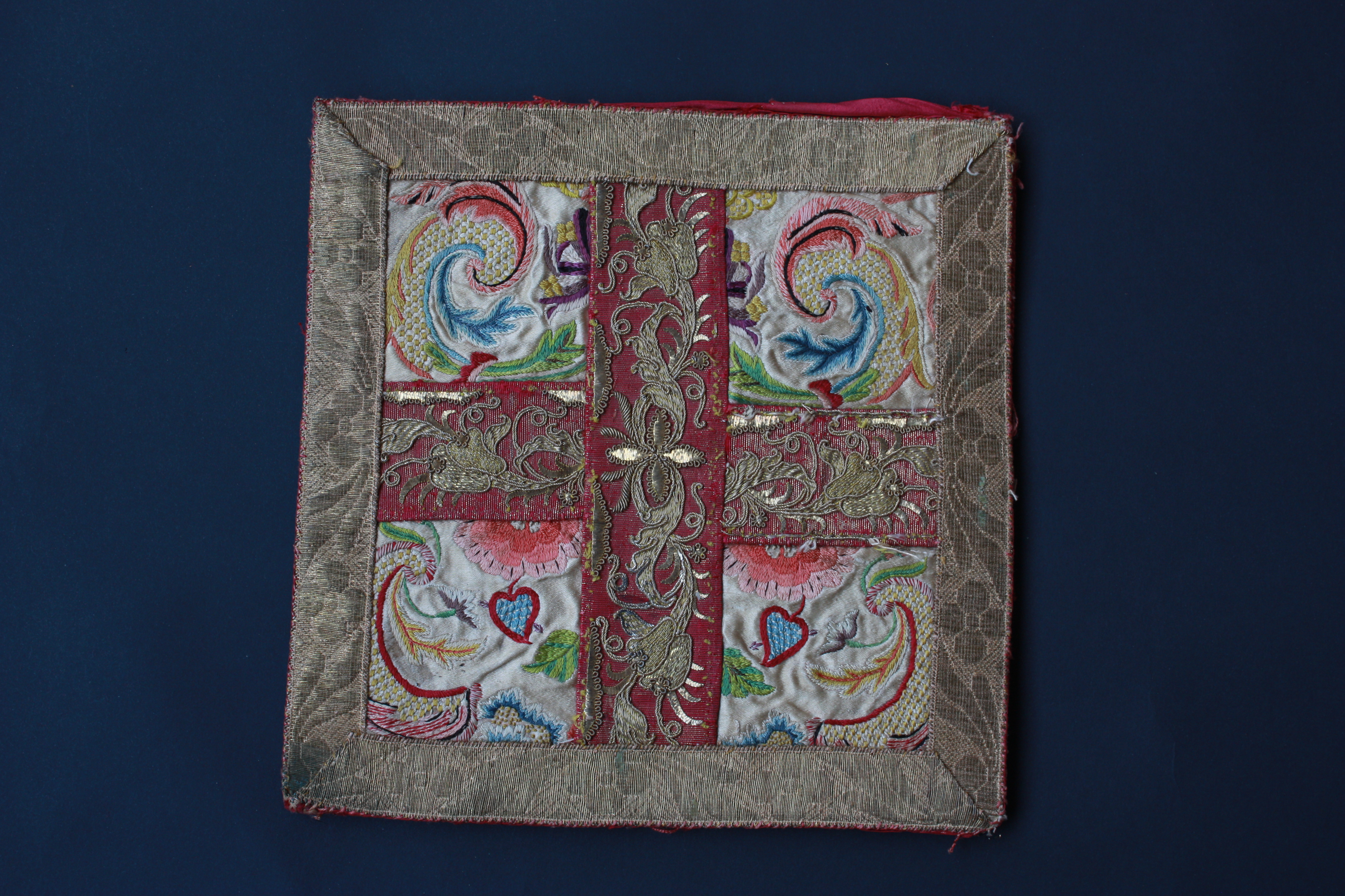 BOLSA de CORPORAL. Belo exemplar com bordados a seda, prata e fio de ouro.